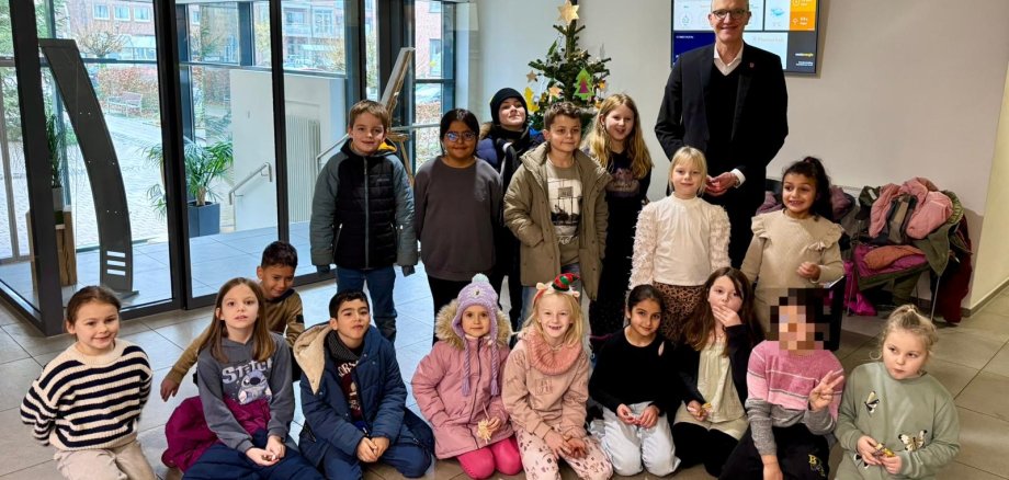 Der Start in die Adventszeit wurde im Rathaus auch in diesem Jahr besonders festlich begangen. Schülerinnen und Schüler der Offenen Ganztagsschule (OGS) kamen am vergangenen Freitag vorbei und brachten eine große Auswahl selbstgebastelter Dekorationen mit. Gemeinsam mit ihren Betreuerinnen und Bürgermeister Andreas Lastering verwandelten sie den Baum im Eingangsbereich des Rathauses in ein buntes, strahlendes Schmuckstück.