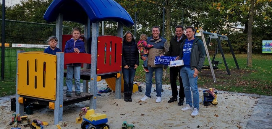 Bürgermeister Berthold Bültgerds, der gemeinsam mit Marion Kessens im Vorfeld die Fördermöglichkeiten ausgelotet hatte, sprach seinen Dank für das gute ehrenamtliche Engagement aus. Er zeigte sich erfreut darüber, dass hier für die Jüngsten ein attraktives Angebot geschaffen wurde. Als Zeichen der Wertschätzung überreichte er den Vertretern von Westfalia eine kleine Anerkennung, woraufhin sich diese mit einem „Westfalia-Schal“ für das gute Miteinander bedankten.
