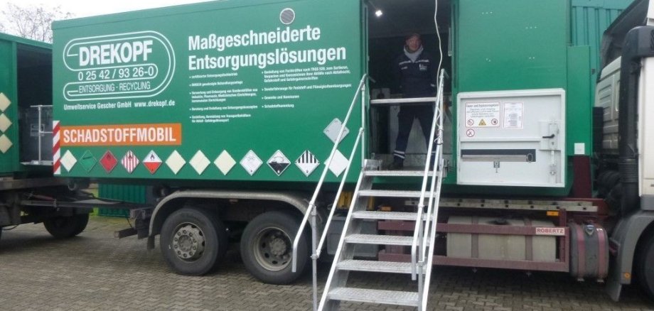 Problemabfälle aus Privathaushalten können am Donnerstag, 15. Januar 2026 in der Zeit von 14.00 bis 16.30 Uhr am Schadstoffmobil auf dem Gelände des gemeindlichen Bauhofes an der Burgsteinfurter Straße abgegeben werden.