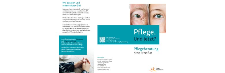 Die Menschen im Kreis Steinfurt werden durchschnittlich immer älter. Damit einhergehend werden auch immer mehr Menschen pflegebedürftig und sind auf Hilfestellung durch andere angewiesen. Das Amt für Soziales und Pflege des Kreises Steinfurt bietet eine kostenlose und trägerunabhängige Pflegeberatung an. Bei Fragen rund um das Thema "Pflege" stehen Ihnen die Mitarbeiterinnen und Mitarbeiter der Pflege- und Wohnberatung des Kreises Steinfurt beratend zur Verfügung und informieren über Herangehensweisen und Möglichkeiten bei der Versorgung im Alter, bei Einschränkungen und Behinderungen und bei Pflegebedürftigkeit. Die Beratung findet persönlich zuhause, bei uns im Büro oder telefonisch statt.